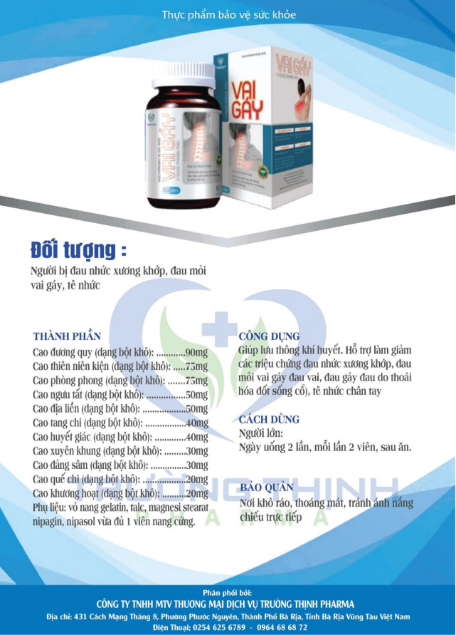 Trang chủ / Shop / VAI GÁY TRƯỜNG THỊNH PHARMA (Hộp 60 viên)